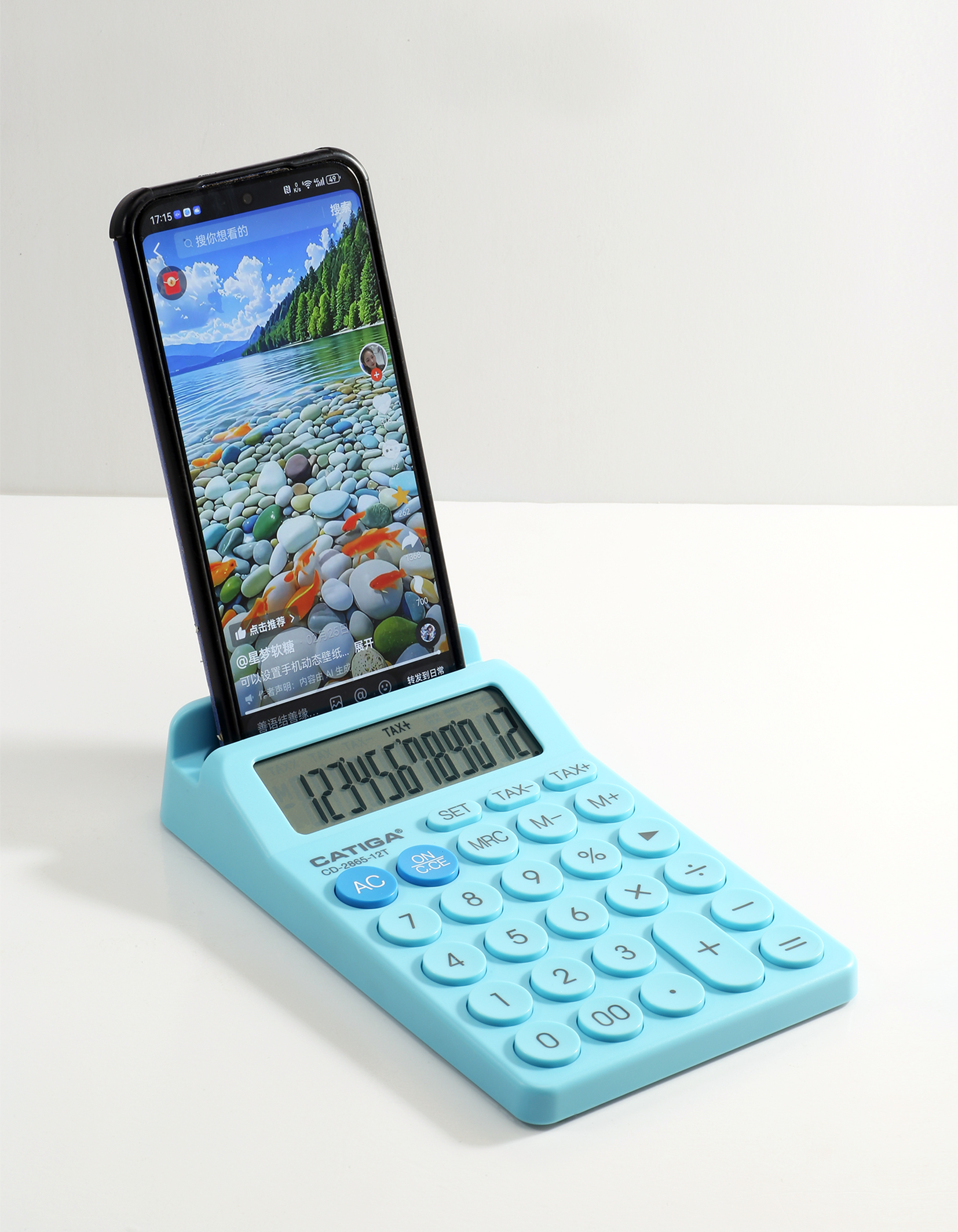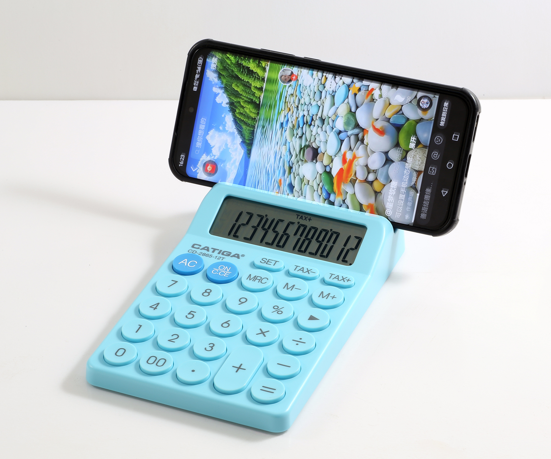Types: desktop calculator with cell phone holder